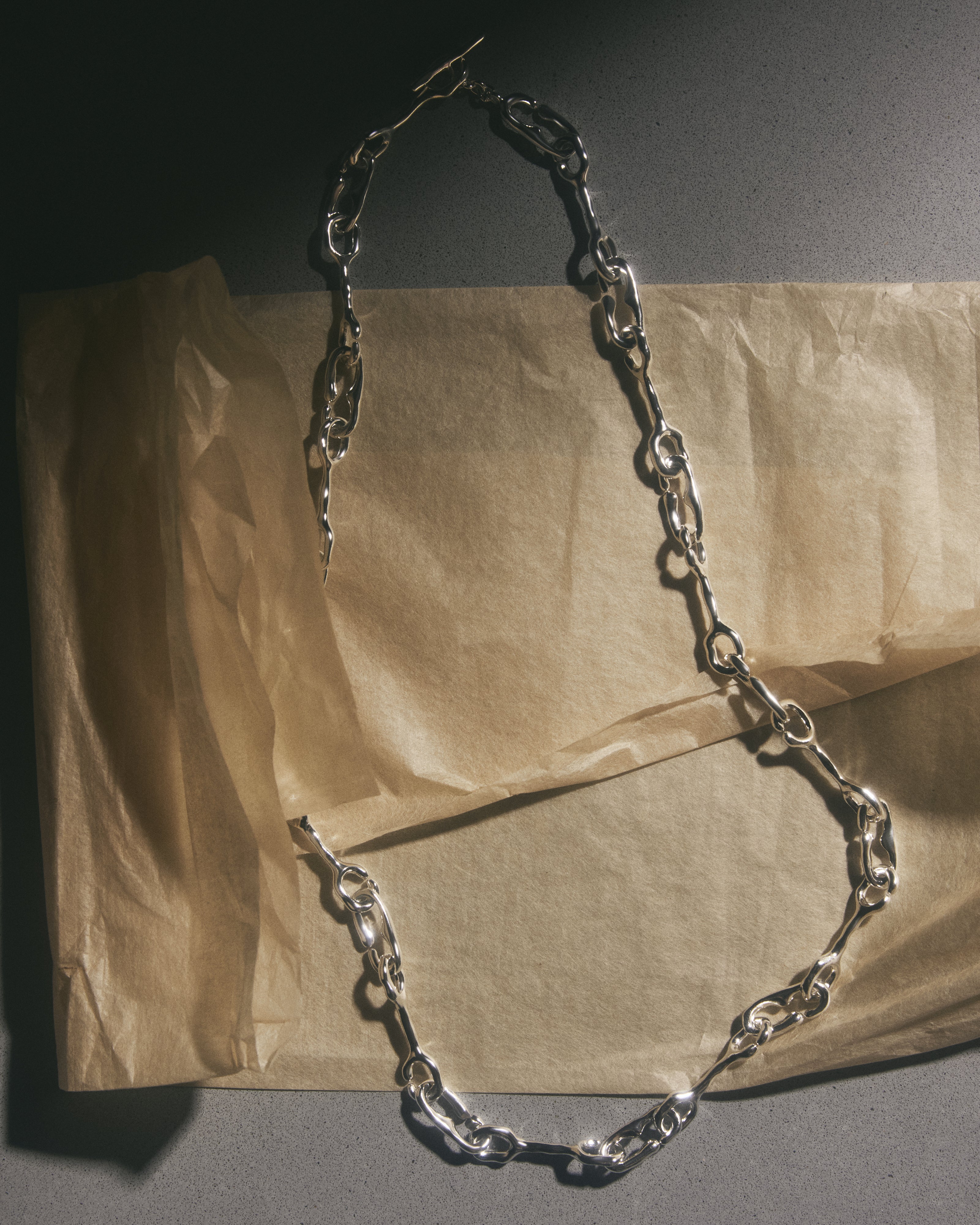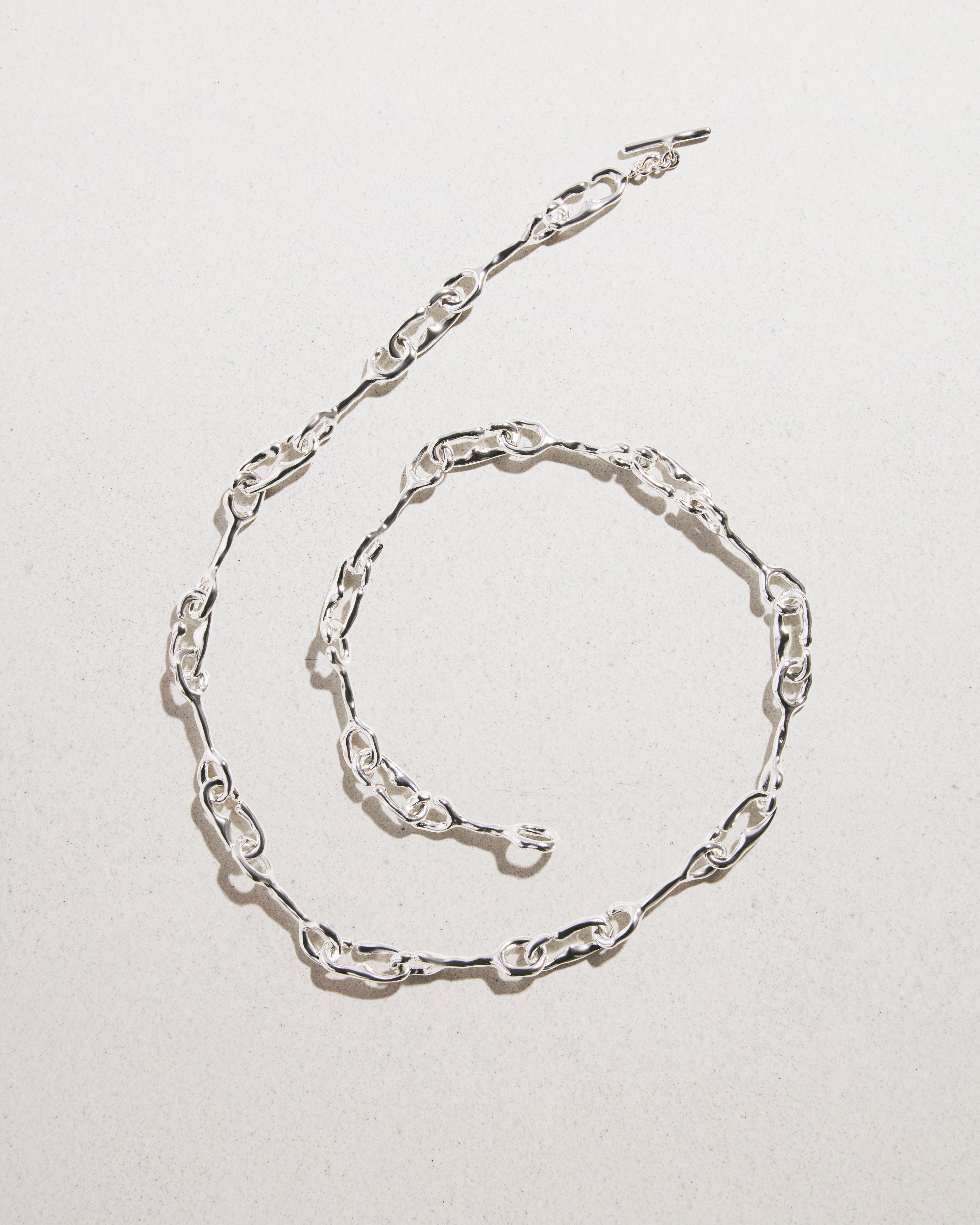- Hand carved links and clasp, molded then cast in Sterling Silver